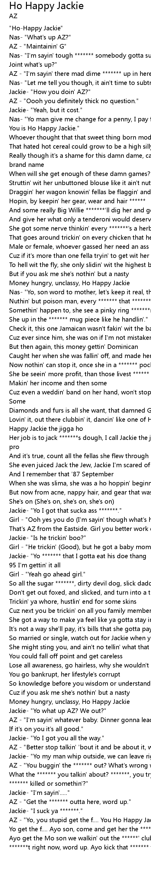 AZ - "Yo, you stupid get the f.... You Ho Happy Jackie ass ******* |
