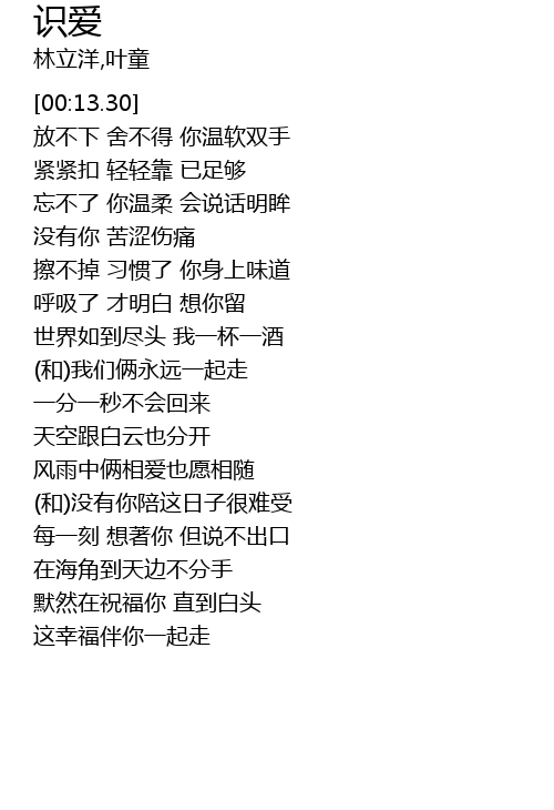 | [00:20.37] | 紧紧扣 轻轻靠 已足够 |