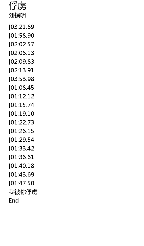 | [03:12.65][01:43.69] | 我是你的俘虏 |