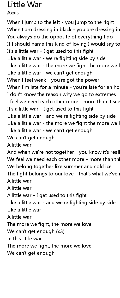 Like a little war - we can't get enough |
