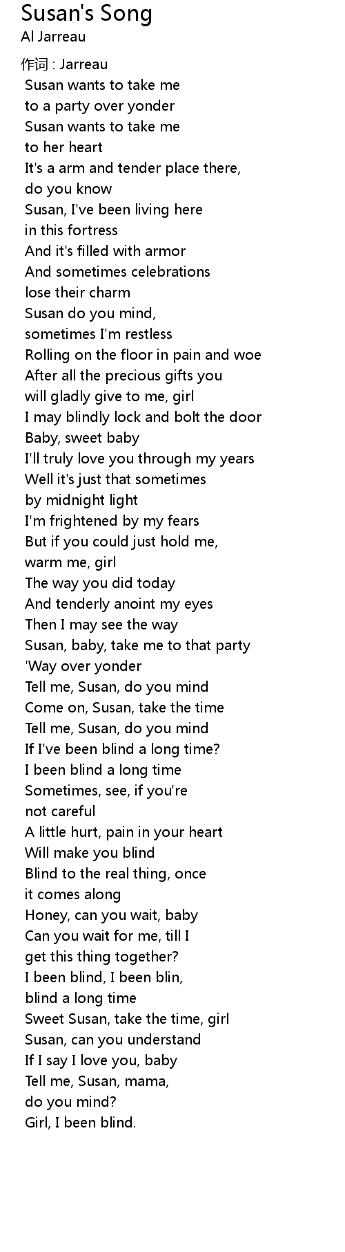 | 歌曲 | Susan's Song |