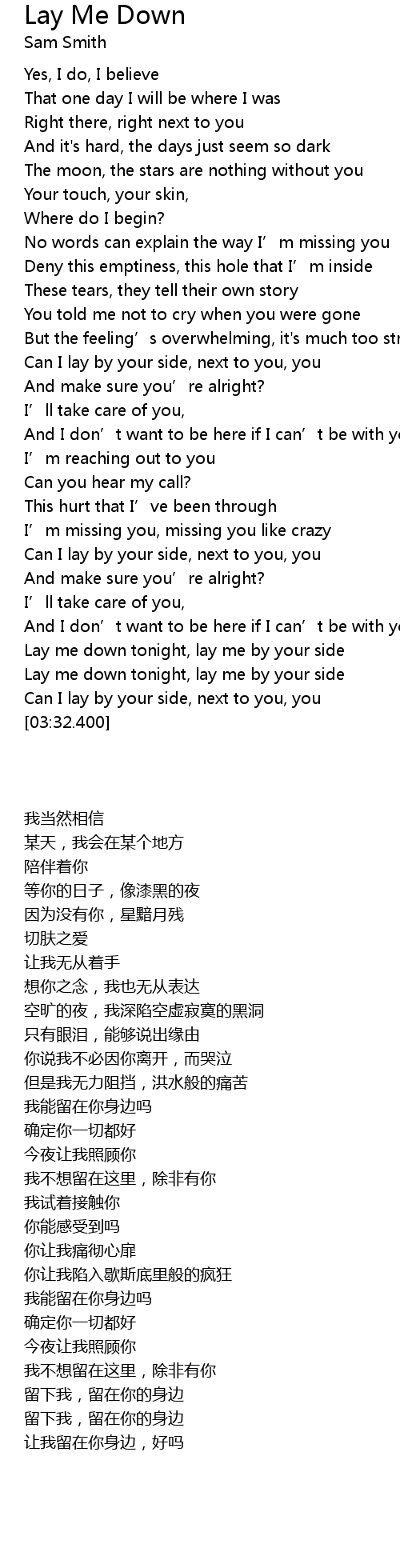 | [02:54.530] | Lay me down tonight, lay me by your side |