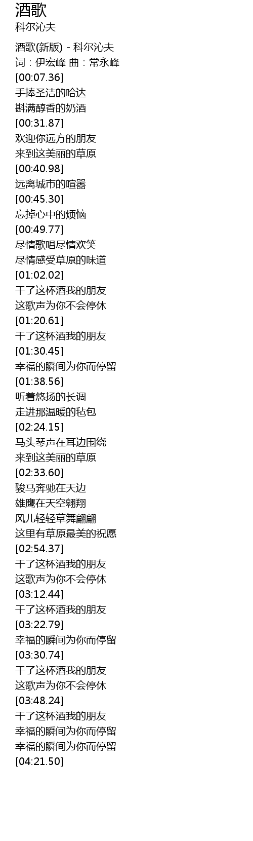 | [00:01.72] | 酒歌(新版) - 科尔沁夫 |