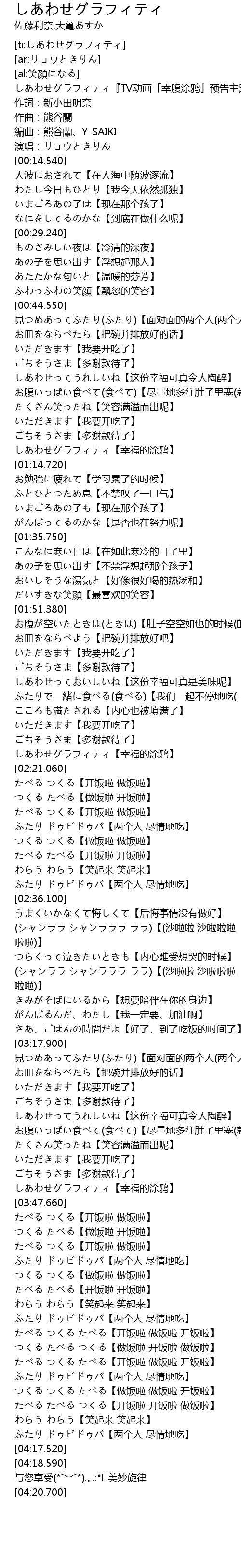 | [02:17.540] | しあわせグラフィティ【幸福的涂鸦】 |