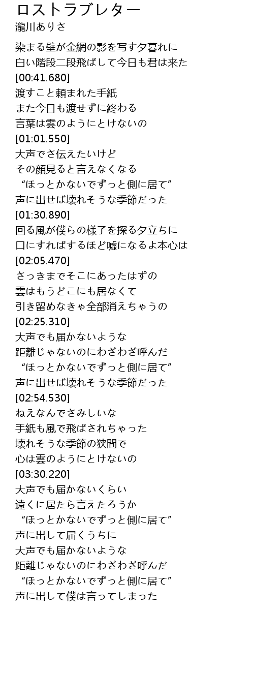 | [02:41.100] | “ほっとかないでずっと側に居て” |