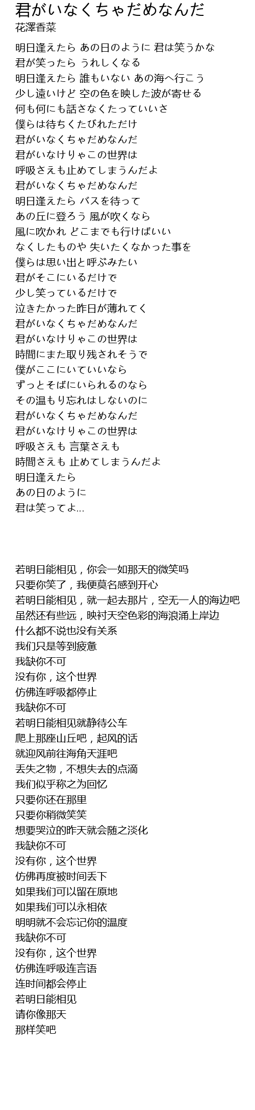 | 歌曲 | 君がいなくちゃだめなんだ |