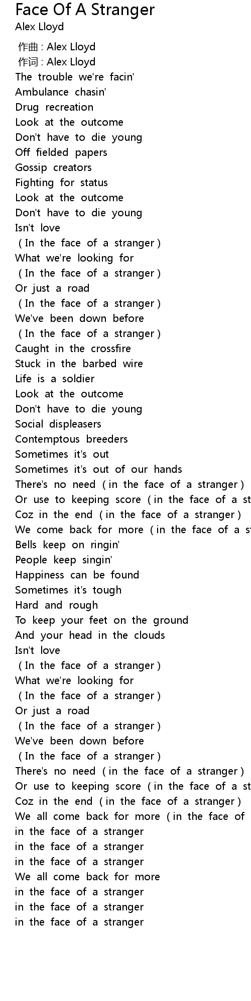 | [01:58.796] | Coz in the end (in the face of a stranger) |