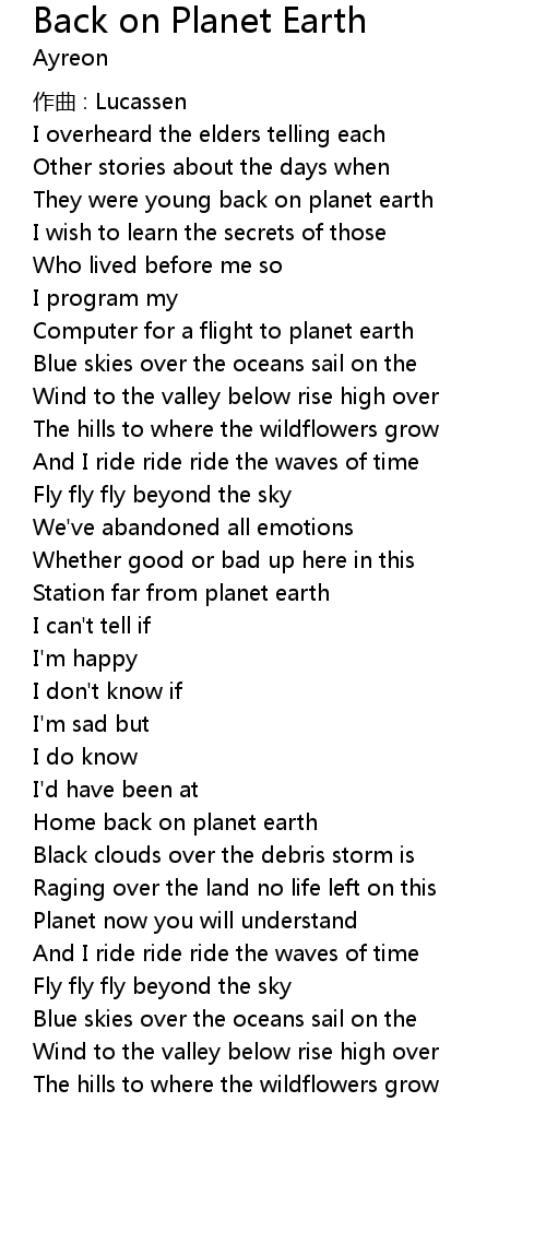 | 歌曲 | Back on Planet Earth |