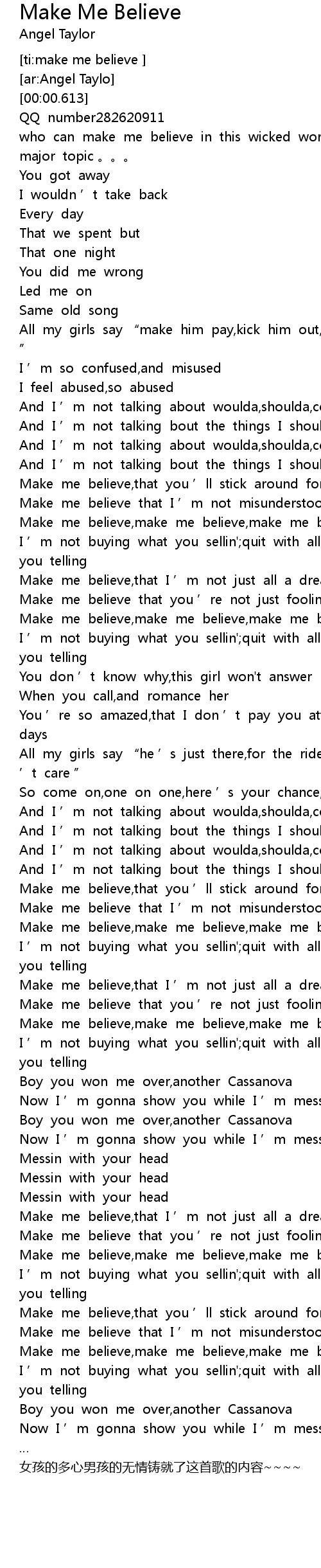 | [01:55.162] | Make me believe,make me believe,make me believe |
