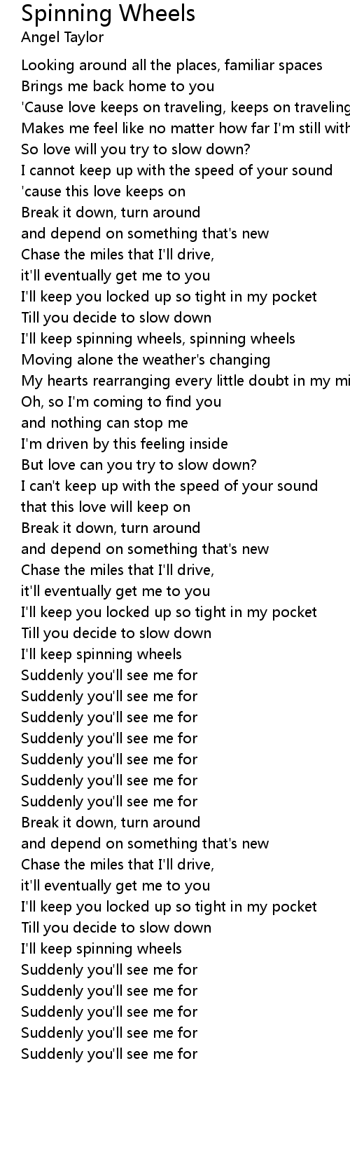 I'll keep spinning wheels, spinning wheels |