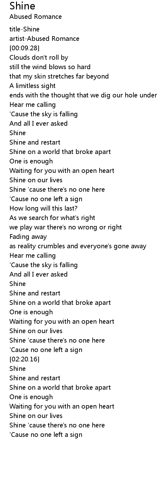 Shine on a world that broke apart |