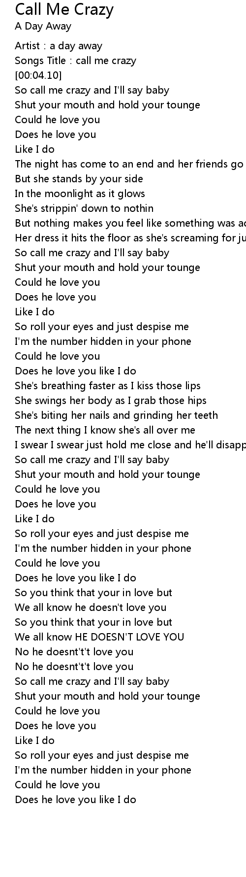 | [00:02.29] | Songs Title:call me crazy |