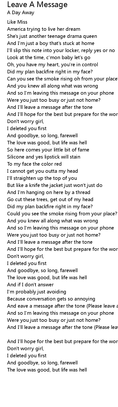 And I'll leave a message after the tone (Please leave a message, after the tone) |