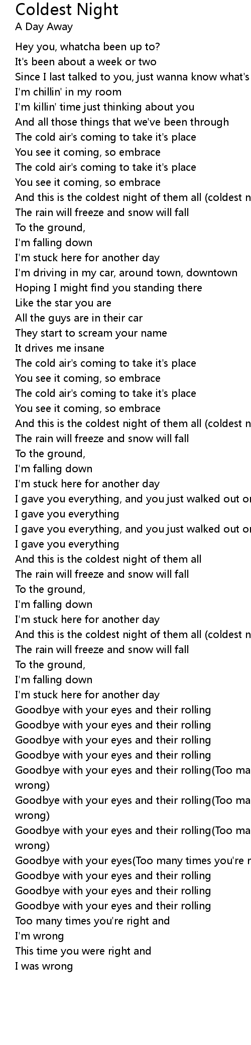 Coldest Night 歌词