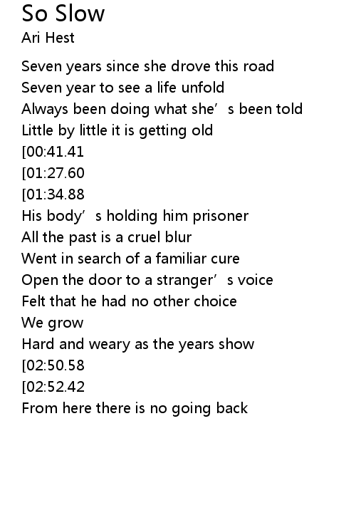 | [00:33.43][00:41.41][01:26.02][01:33.13][02:28.69][02:43.89] | So slow |