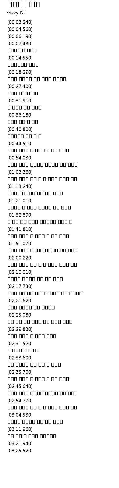 | [02:37.880] | 아무도 모르죠 그 누구도 내 맘을 모르죠 |