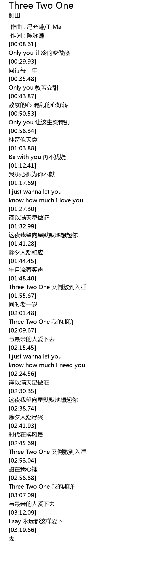 | [03:02.33] | Three Two One 我的期许 |