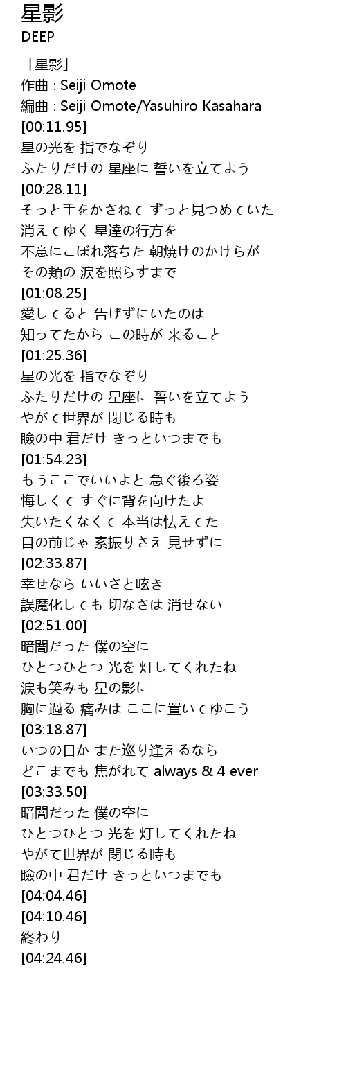 | [03:25.92] | どこまでも 焦がれて always & 4 ever |
