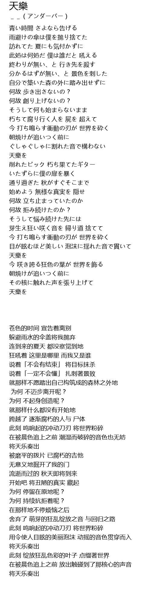| [04:01.84] | 此刻 绽放狂乱色彩的叶子 点缀著世界 |
