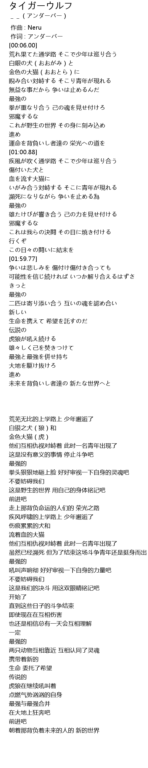 | [00:01.00] | 作词 : アンダーバー |