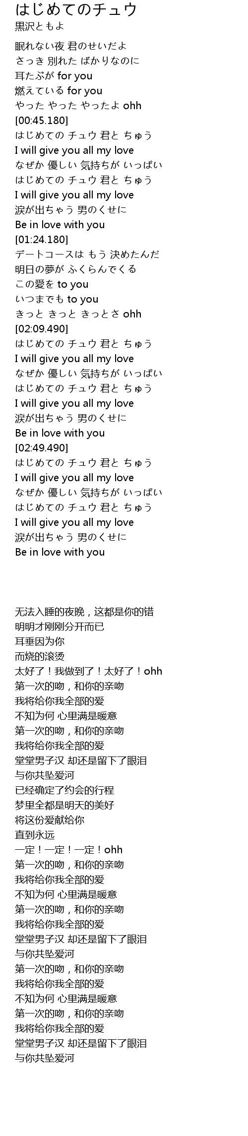 | [00:46.180] | はじめての チュウ 君と ちゅう |