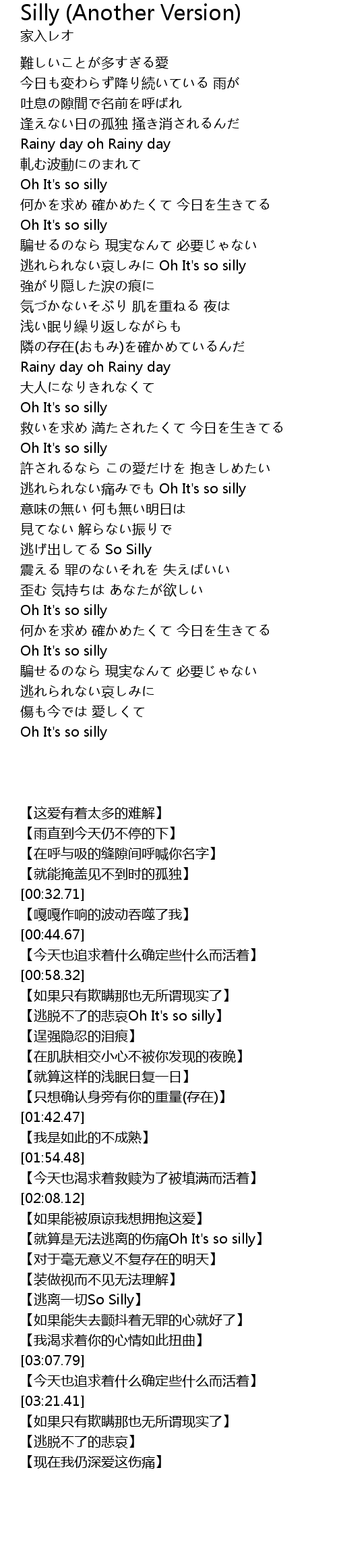| [02:20.74] | 【就算是无法逃离的伤痛Oh It's so silly】 |