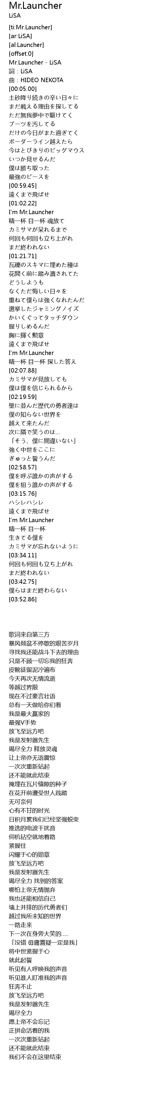 | [00:03.26] | 曲:HIDEO NEKOTA |
