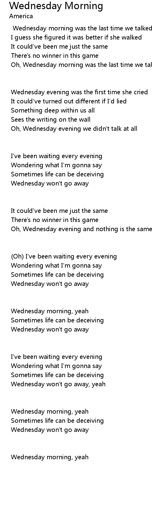 Wednesday won't go away, yeah |