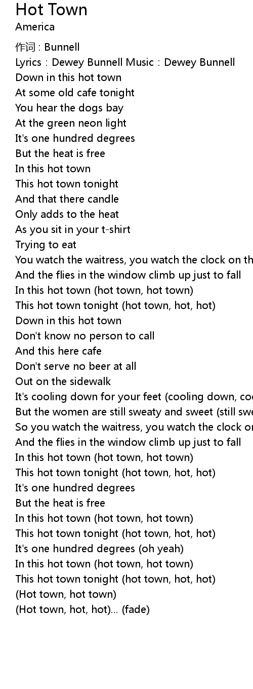 | This hot town tonight hot town, hot, hot | |