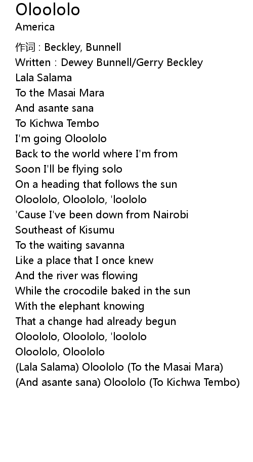 | (And asante sana) Oloololo (To Kichwa Tembo) |