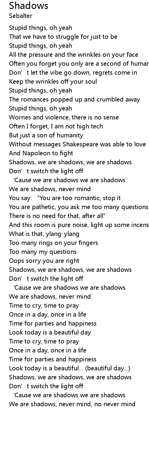 | [02:34.72] | ' Cause we are shadows we are shadows |