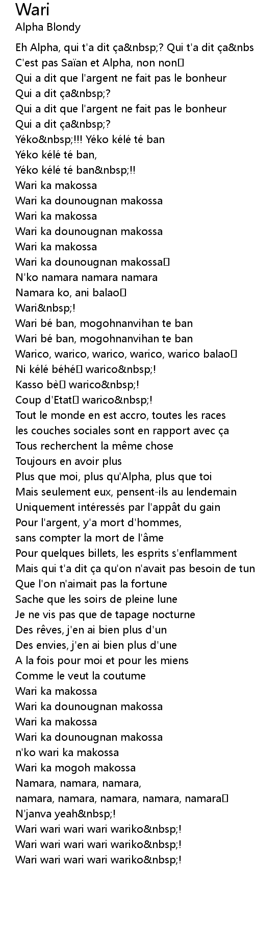 | Ni kélé béhé warico ! | |