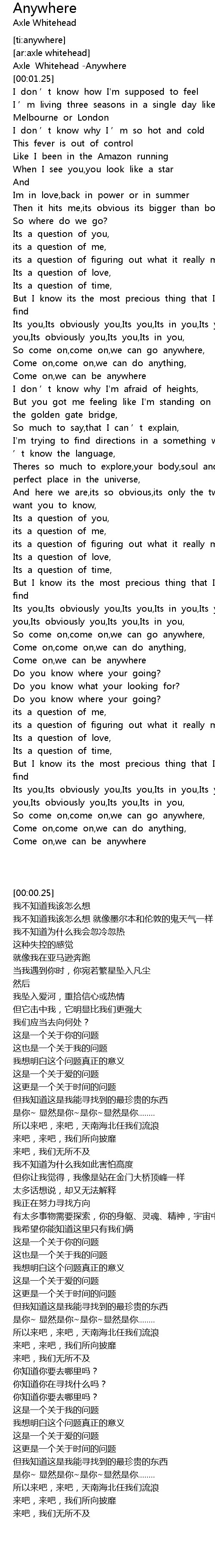 | [00:00.25] | Axle Whitehead -Anywhere |