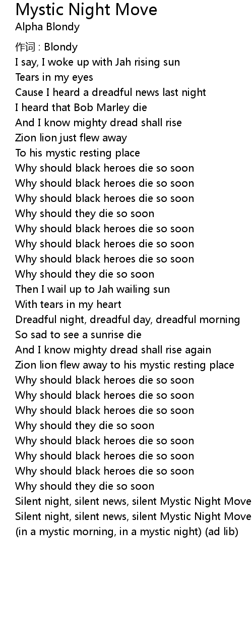 | Silent night, silent news, silent Mystic Night Move (ad lib) | |