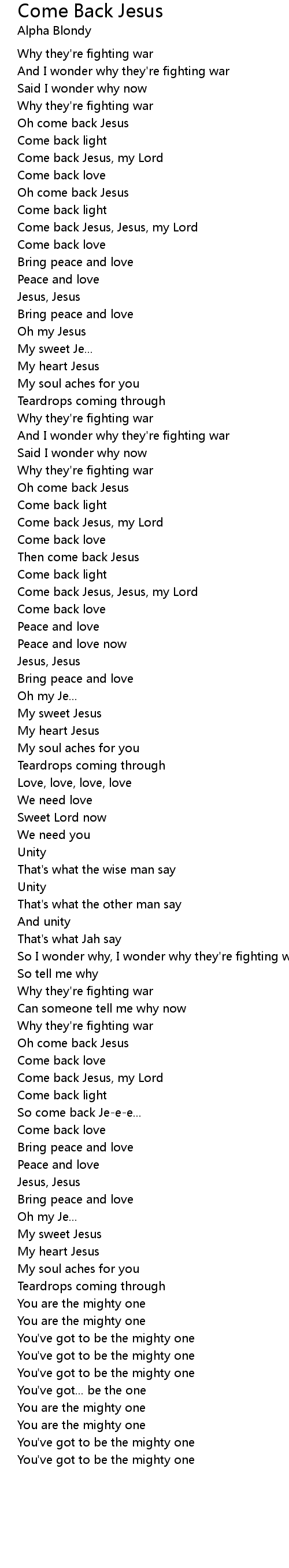Then come back Jesus |
