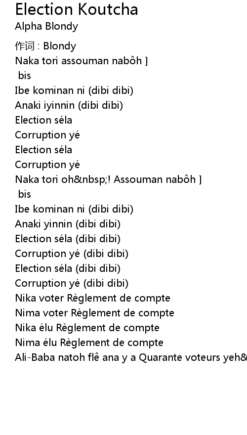 | Naka tori oh ! Assouman nabôh ] bis | |