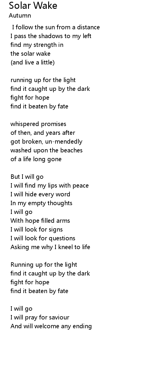 I follow the sun from a distance |
