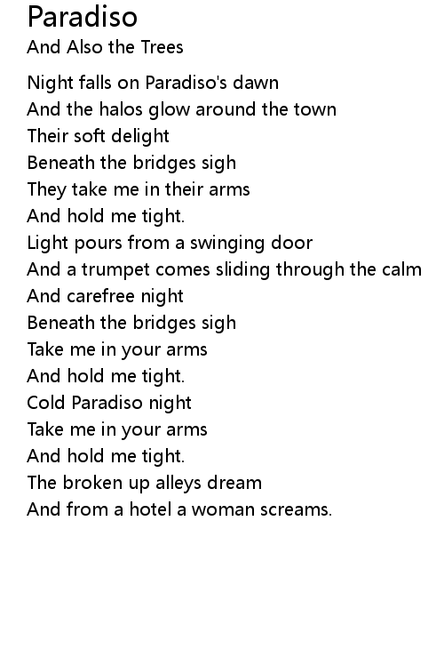 | Night falls on Paradiso's dawn | |