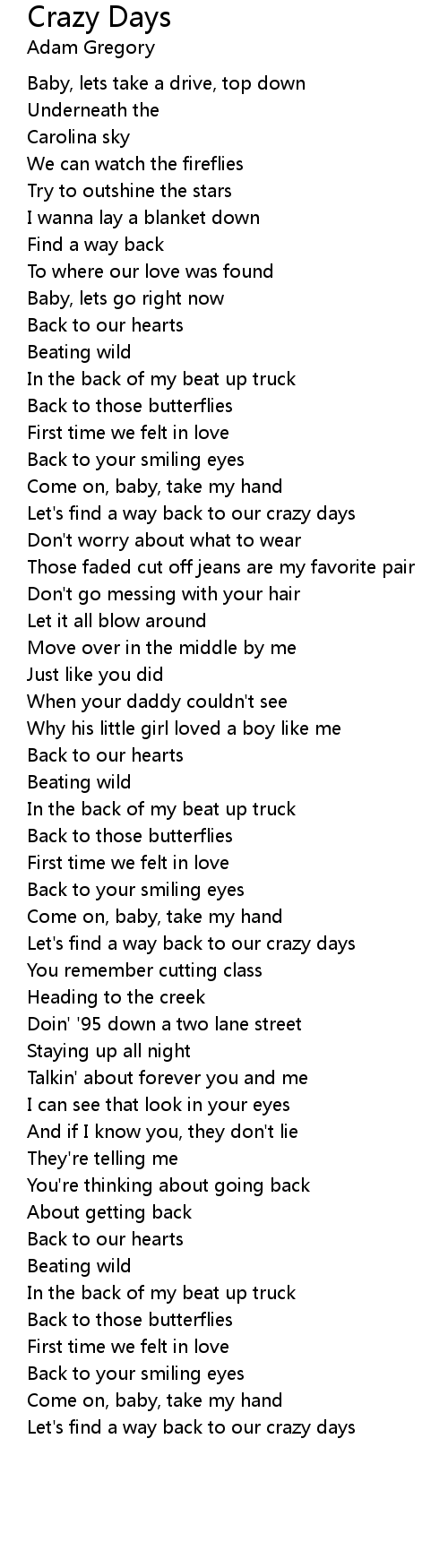 Let's find a way back to our crazy days |