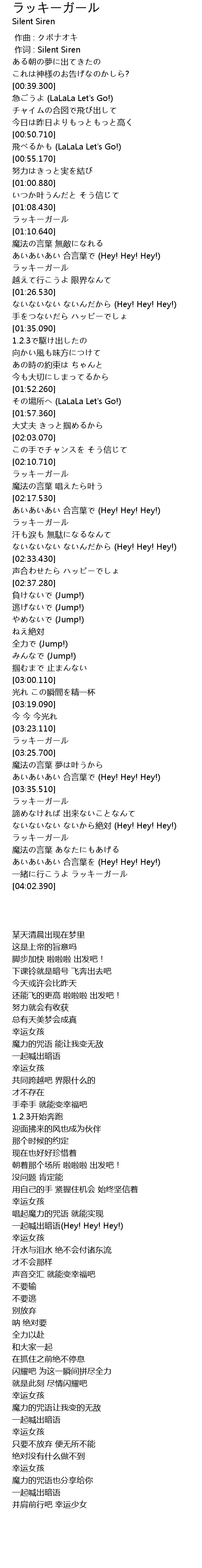 | [01:20.600] | ラッキーガール |