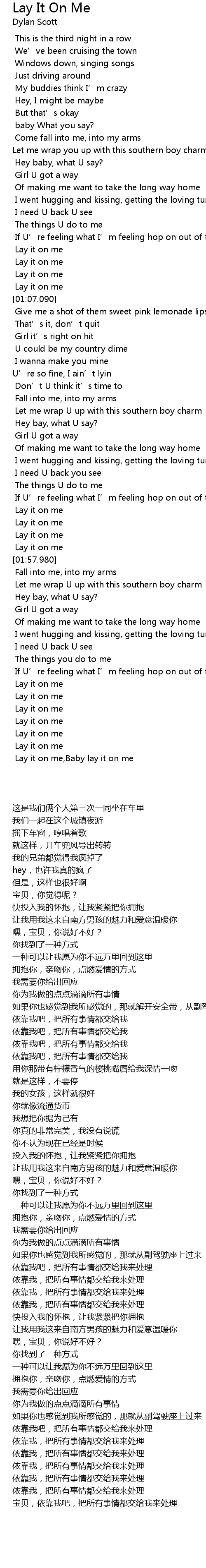 | [02:46.330] | Lay it on me,Baby lay it on me |
