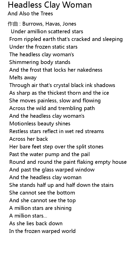| 歌曲 | Headless Clay Woman |