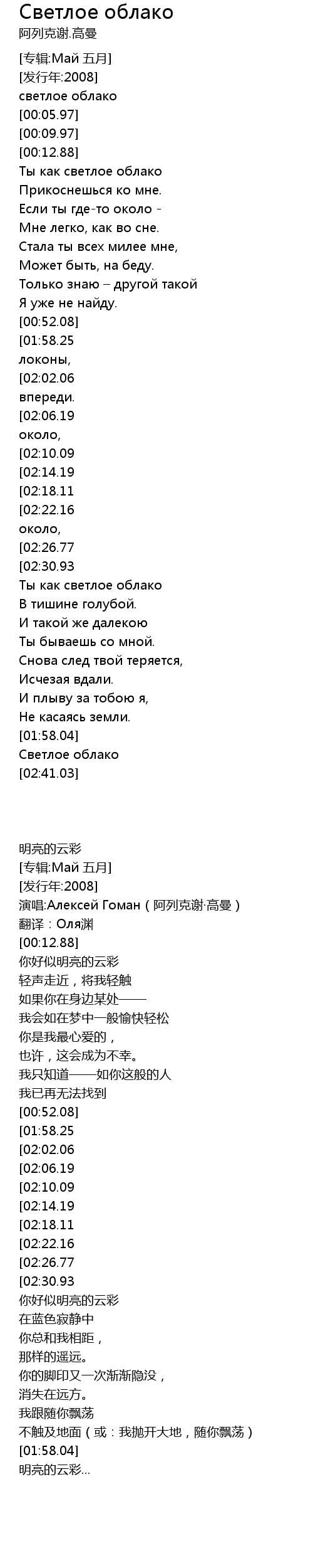 | [02:36.05] | Светлое облако |