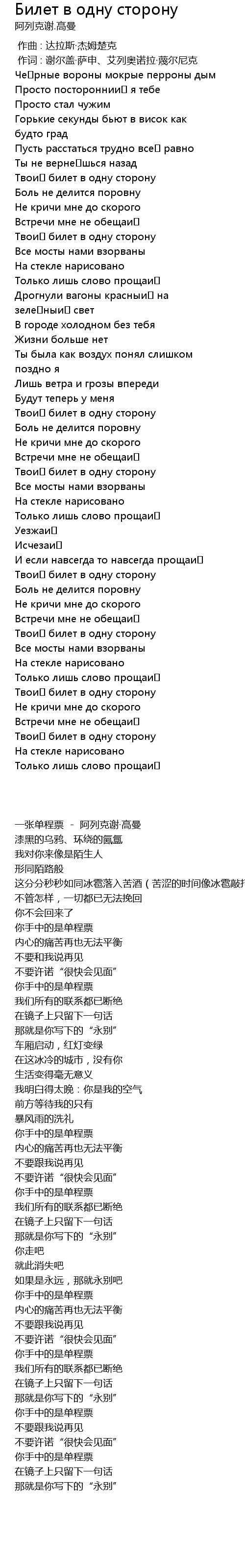 | [00:00.810] | 一张单程票 - 阿列克谢·高曼 |