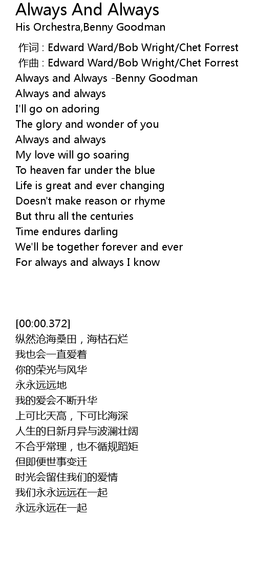 | [00:00.000] | zuo ci : Edward Ward Bob Wright Chet Forrest |