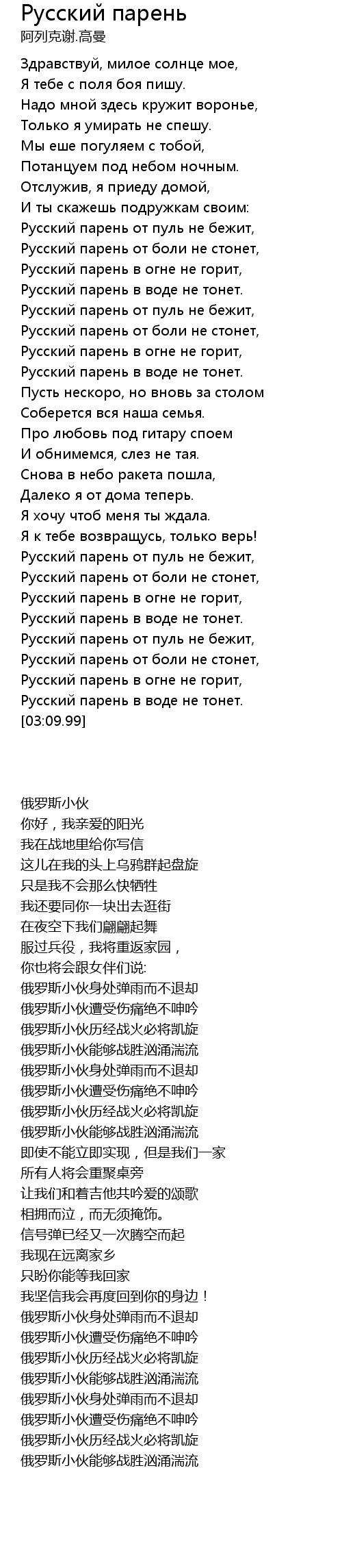 | 歌曲 | Русский парень |