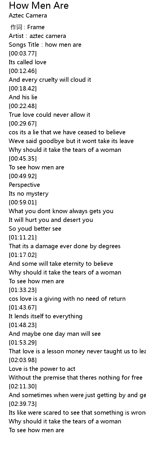 | [02:40.86] | Its like were scared to see that something is wrong |