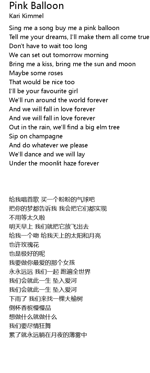 Sing me a song buy me a pink balloon |