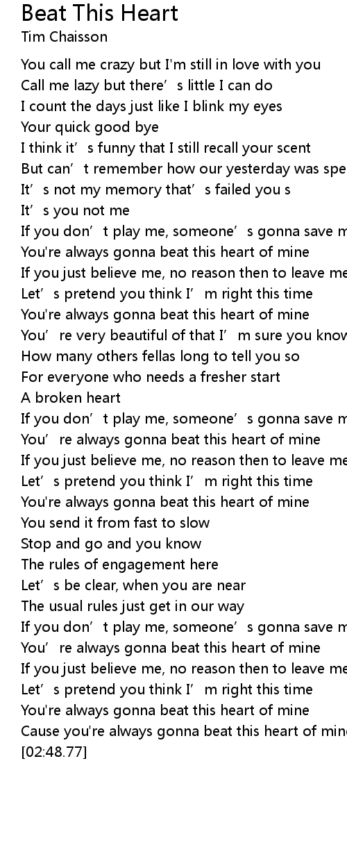 | [02:34.81] | You're always gonna beat this heart of mine |