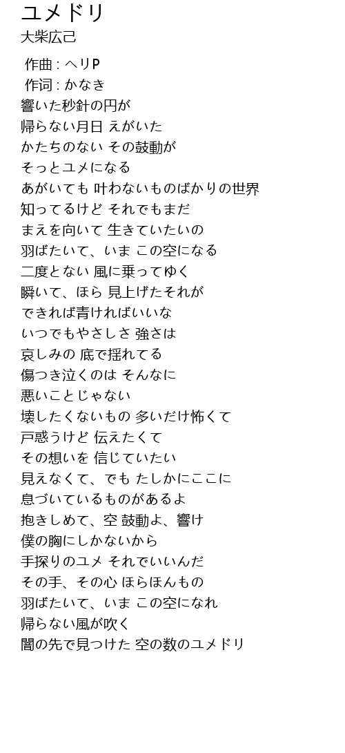 | [03:24.88] | 羽ばたいて、いま この空になれ |